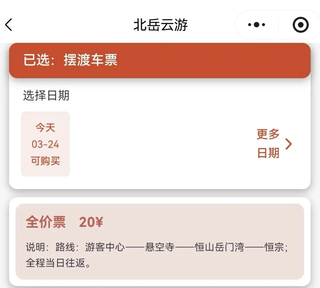 温馨提示:非徒步爱好者,抵达恒山游客中心后,需额外购买摆渡车票 20元