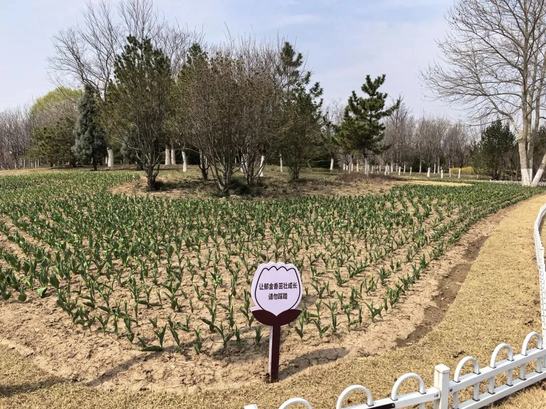 这里的郁金香还没有开花,估计再有个十天半个月就更漂亮了。