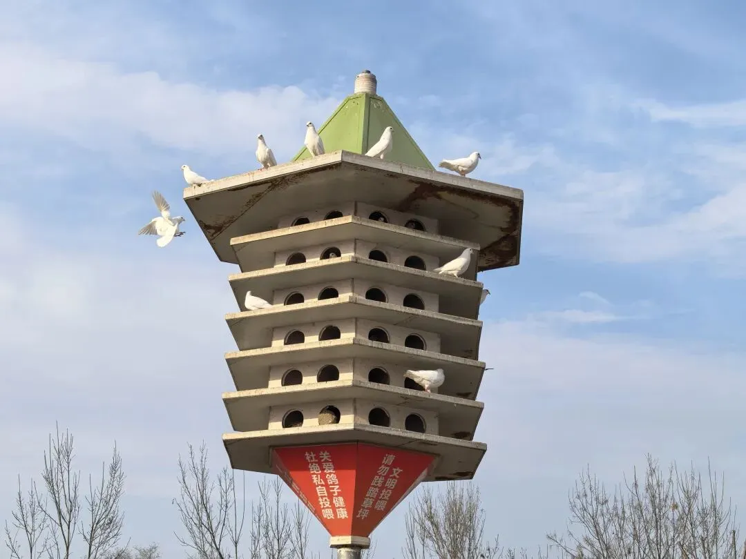 许久不来这里,竟然多了几个鸽子窝,一只只小白鸽自由自在的飞来飞去,真是令人羡慕。