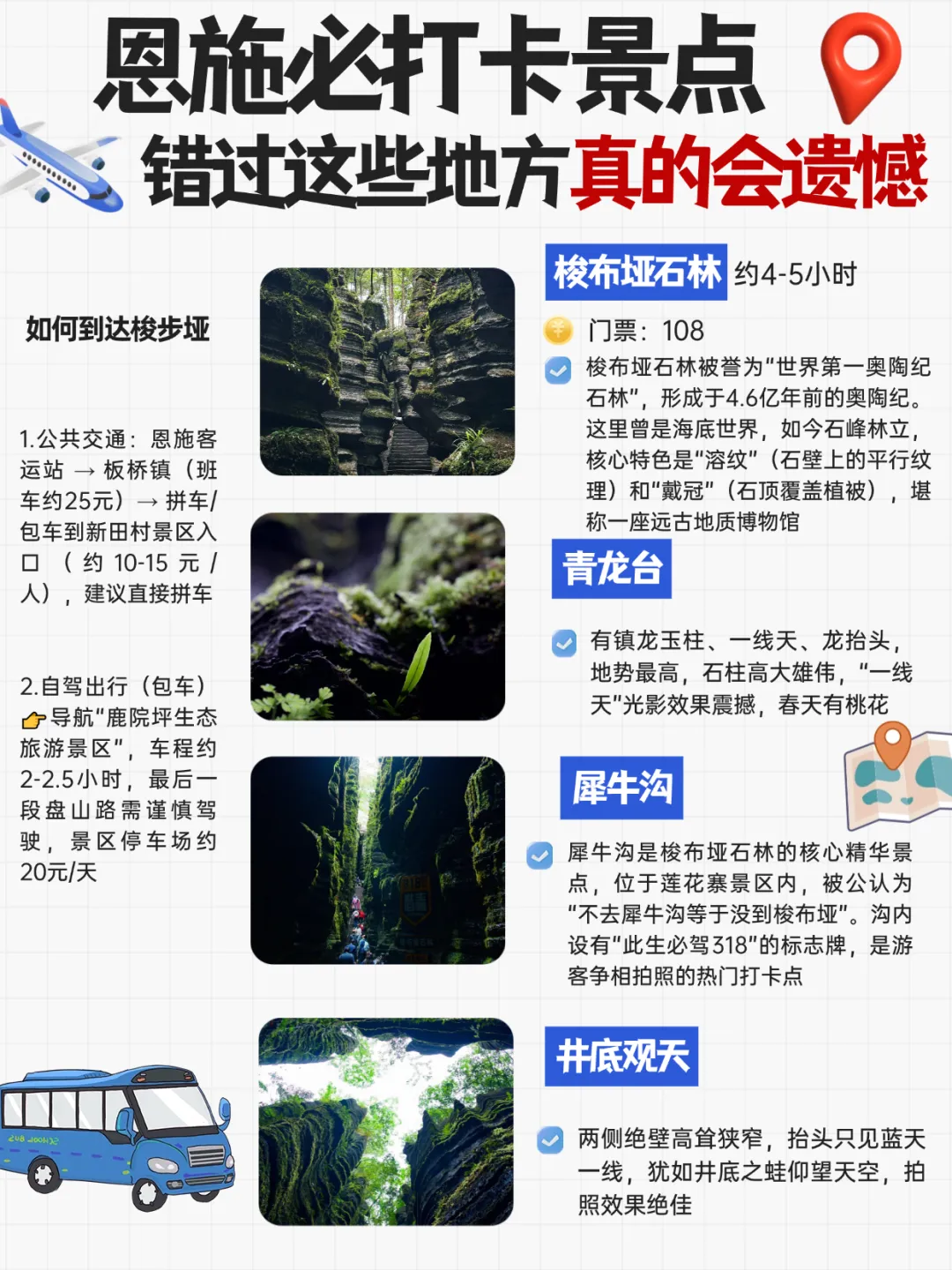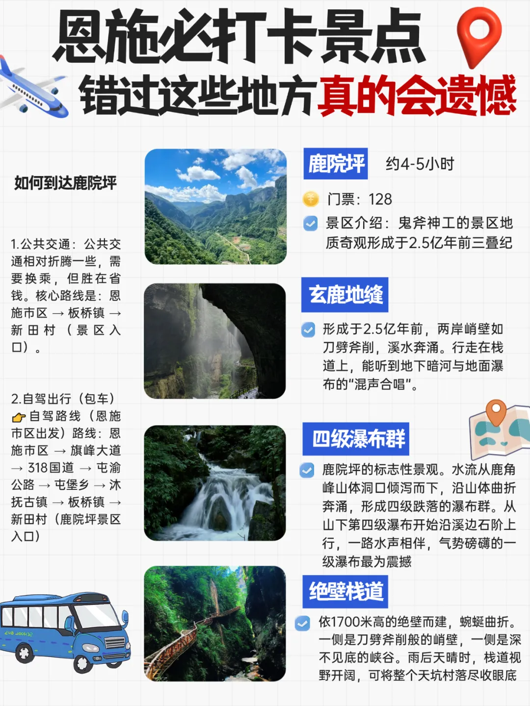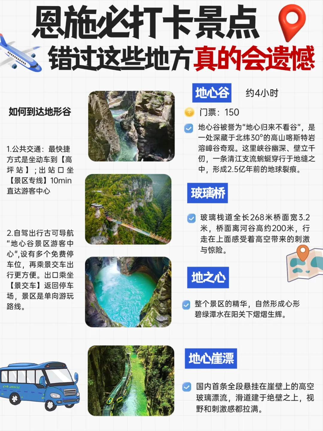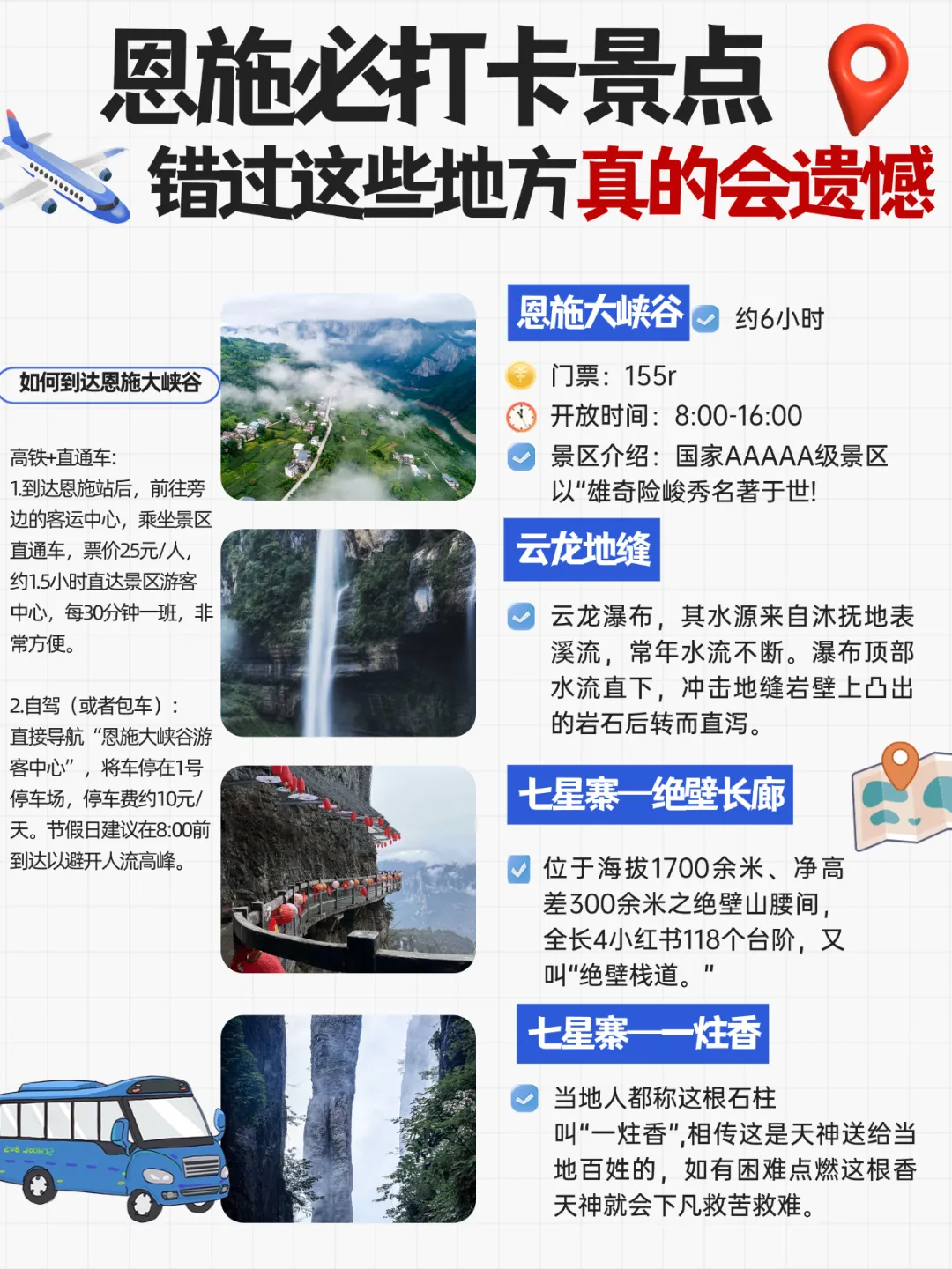 景区直通车:恩施客运中心→大峡谷,25元/人,约1.5小时