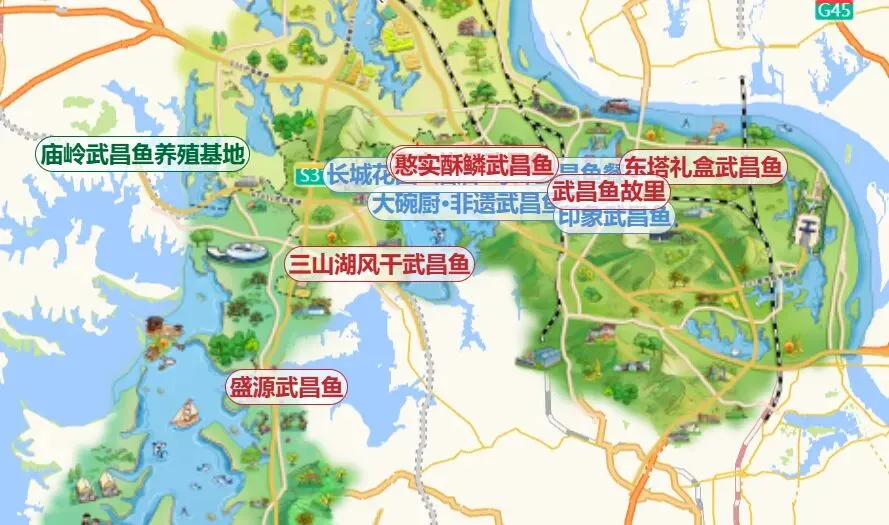 作为鄂州金字招牌,武昌鱼成为此次数字地图赋能的重点。平台全面上线了武昌鱼养殖基地、垂钓体验点、渔家美食店及文创打卡地等资源,实现了从“鱼塘”到“餐桌”再到“文创”的全场景覆盖。依托数字地图,精心打造了“乘舟赏湖+湖畔垂钓+渔家食鱼+民宿度假”的沉浸式体验模式,让游客在品味鱼米之乡美景的同时,亲身感受武昌鱼文化的独特魅力,极大地拓宽了消费场景,让“一条鱼”游出了新价值。