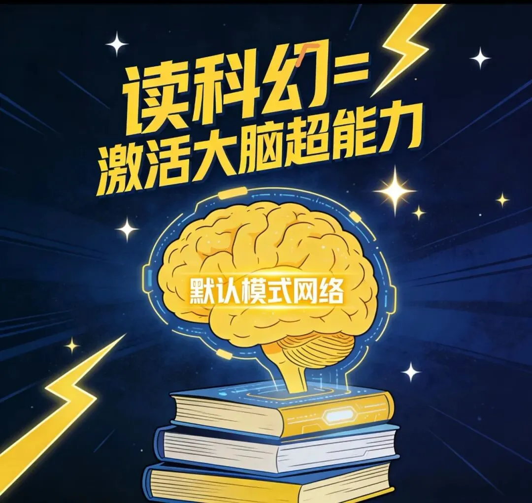 神经科学研究发现,阅读科幻时,大脑的默认模式网络(负责想象、共情、未来规划的区域)活跃度显著提升。
