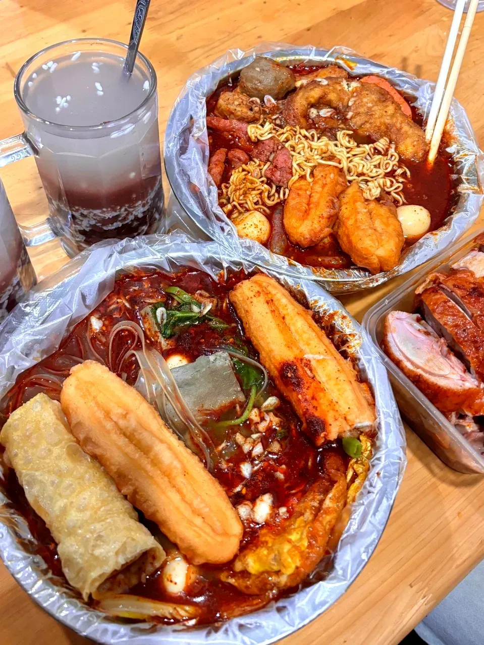 芜湖小吃三件套:中山路步行街打卡红皮鸭、麻辣烫、赤豆酒酿,红皮鸭皮酥肉嫩,麻辣烫鲜爽入味,赤豆酒酿甜润解腻,一口尝尽芜湖市井滋味。