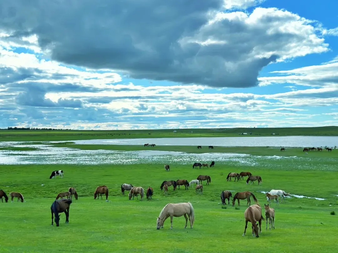 骑马疾驰在辽阔的大草原上,感受自然的气息,心旷神怡!