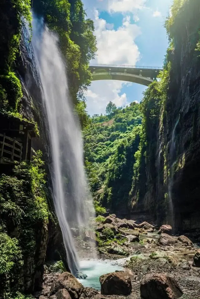 核心亮点:藏在鹤峰的世外桃源,河水清澈见底,船行水面如同悬浮在空中,随手一拍都是大片,是全网爆火的网红打卡地。峡谷幽深,一线天景观狭窄震撼,两岸绝壁对峙,置身其中,仿佛闯入与世隔绝的仙境,治愈感拉满。