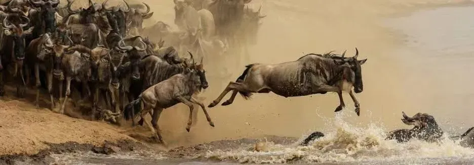 “马拉河之渡” 被誉为 “世界上最危险的迁徙路段”,每年7-10月旱季,百万角马冒险穿越马拉河,躲避鳄鱼的伏击和狮子的突袭。 这是最著名的区域,也是最旺的季节,不仅价格不菲,记得要至少提前半年以上预订哟~