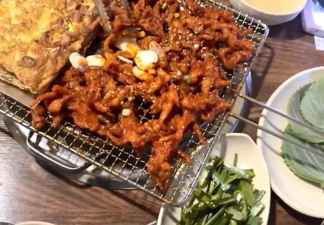 韩式烤肉、韩牛、部队锅、参鸡汤,辣炒年糕、鱼饼串、紫菜包饭、酱蟹,还有灵魂搭配 ——炸鸡 + 啤酒。小菜无限续,街边摊香到迷路,吃货在这里,只有 “吃不下”,没有 “不好吃”。