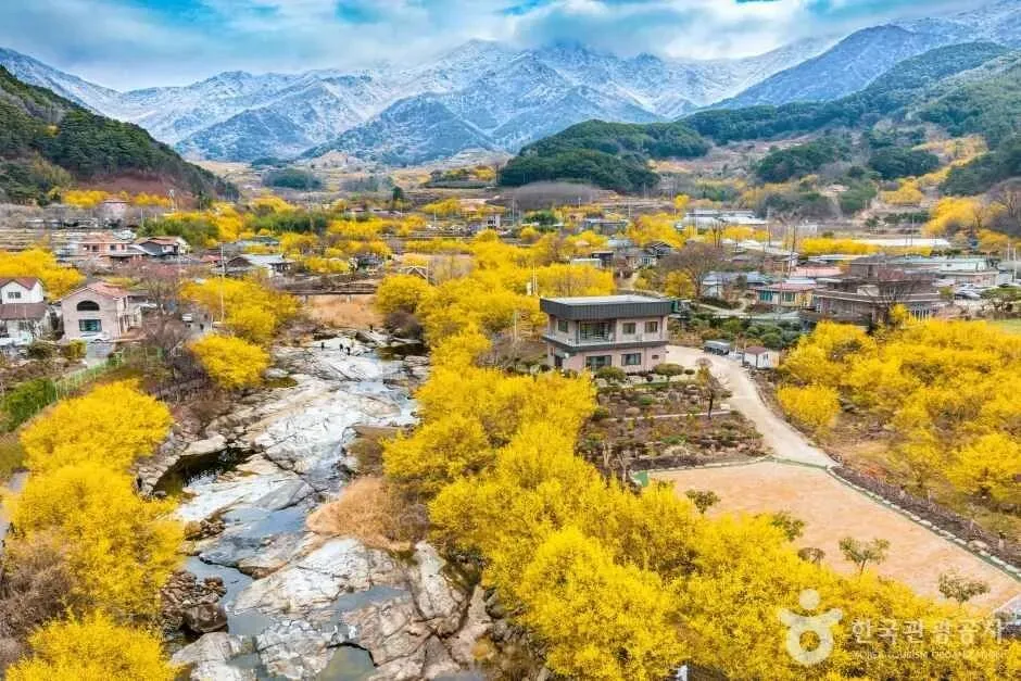 利川山茱萸村拥有约1万7千株树龄超过百年的山茱萸树,是首都圈著名的春花景点。从首尔出发驾车约1小时即可抵达,非常适合一日游。位于元积山山麓的五个村落中,金黄色山茱萸花盛开在石墙小路之间,勾勒出温暖而宁静的乡村春景。每年举办的利川白沙山茱萸庆典(2026.04.03~04.05)期间,游客还可以品尝山茱萸米酒、体验传统民俗游戏等活动。