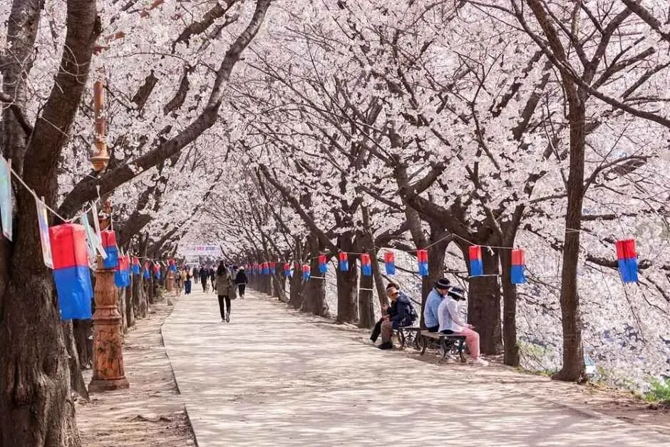 最具代表性的赏花地点包括延绵1.5公里樱花隧道的余佐川以及沿800米铁道排列的庆和站。余佐川沿岸设置了步道和夜间灯光,适合在春夜中悠闲漫步。拥有60多年历史的韩国代表樱花庆典——镇海军港祭(2026.03.27~04.05)期间,还将开放海军士官学校,并举办军乐仪仗表演等丰富活动。