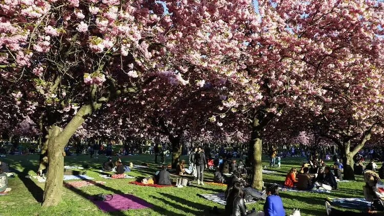 最后,如果想和家人朋友一边野餐一边赏樱的话,最推荐的地点是艺术宫或者金门公园的林德利草地,都有草地可以铺野餐垫。