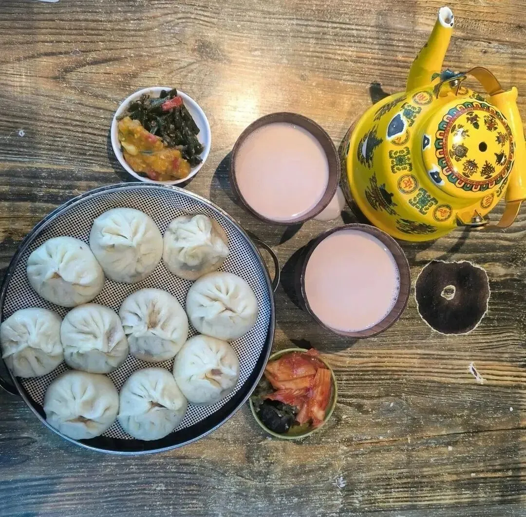 乌力吉塔拉奶茶馆内汇总了各类地道的蒙式小吃,烧麦皮薄馅大,布里亚特包子汁水四溢,奶茶咸香可口,奶渣饼香气扑鼻······在这里吃完早餐,一天都是能量满满的状态。