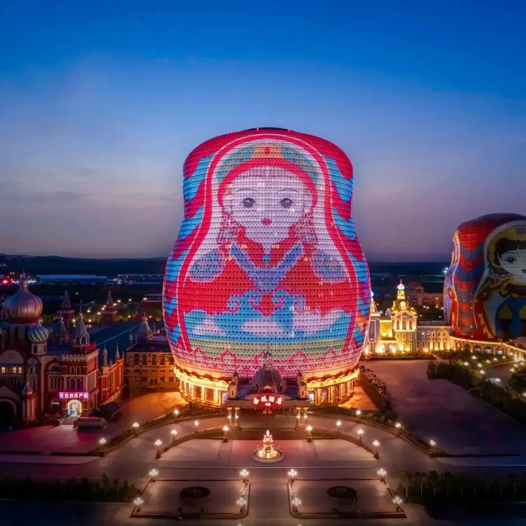 满洲里口岸套娃景区:广场上矗立着全球最大的套娃城堡,30米高的七彩主城堡格外引人注目。随处可见的俄式洋葱头建筑群,满是浓郁的俄罗斯风情;分布在广场各处的十二生肖大型雕塑,更是游客合影留念的热门选择。