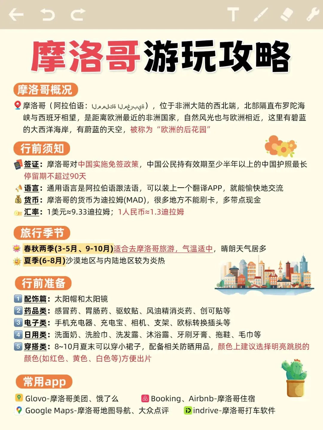 🌹26年计划要去摩洛哥🇲🇦的姐妹们,不要不做攻略就无脑冲,不然很容易踩坑‼刚从摩洛哥回来,给大家整理了一份清晰简单的攻略📜快来抄作业!