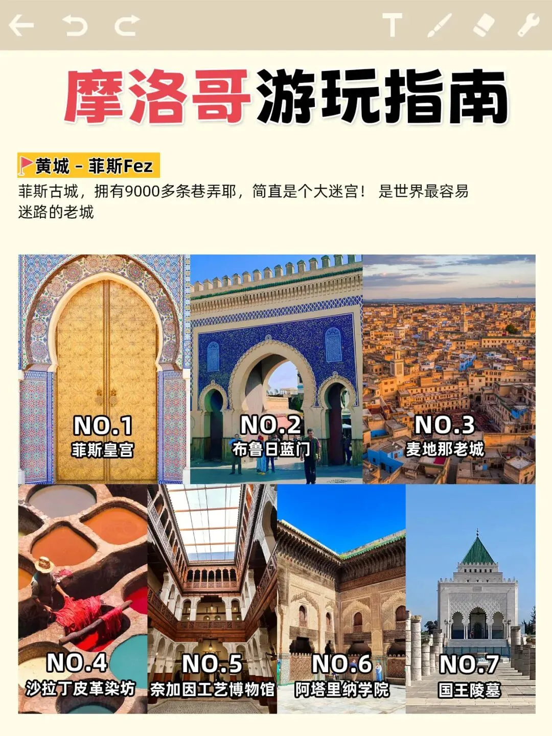 摩洛哥旅游城市和景点很多,每个城市之间距离较远,想要玩得深度一定要多预留一些旅行时间~