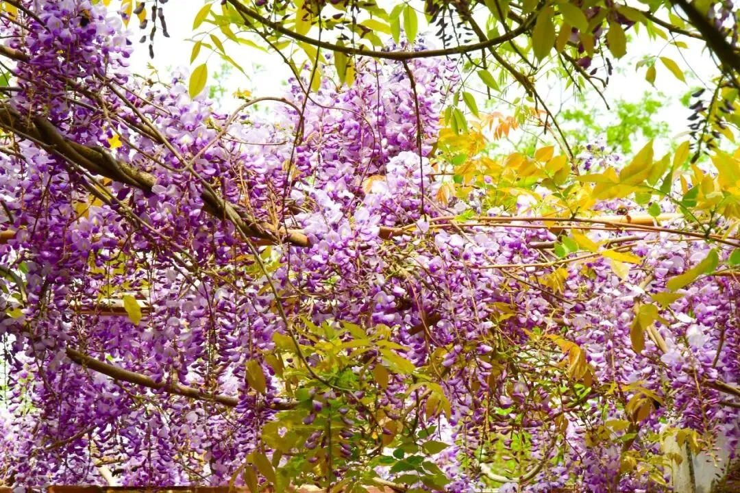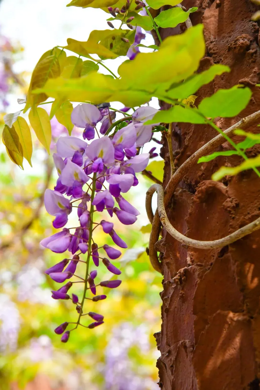 主要特点:紫色花穗悬垂如瀑布,串串蝶形花朵密集,香气浓郁,远飘可闻。