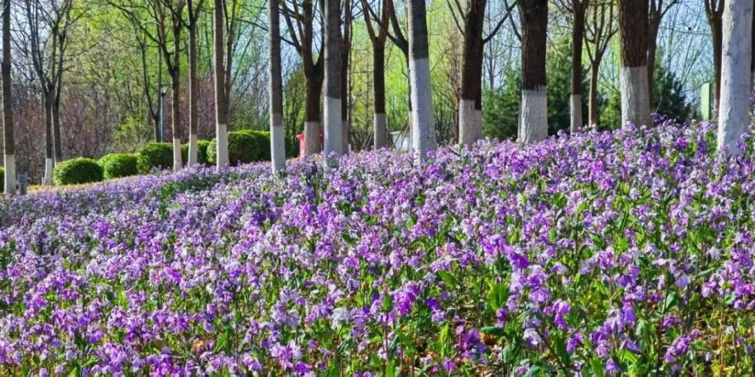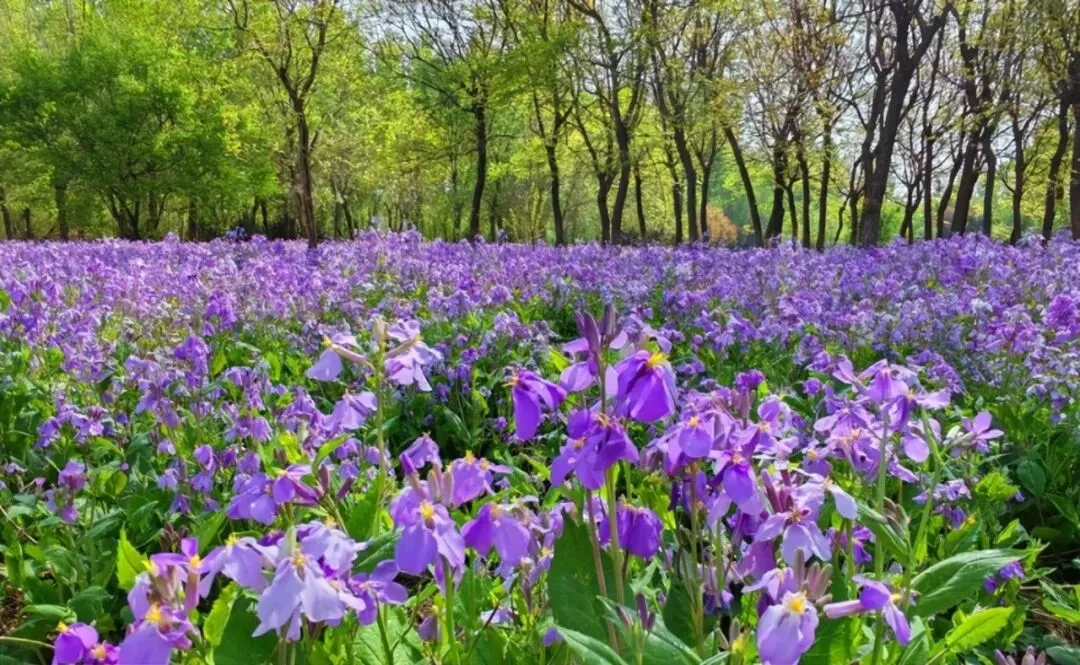 蓝紫色的草本小花,花型小巧、繁密成片,在潮白河湿地公园的绿地间肆意绽放,如铺就一层紫色地毯,与桃花、绿草相映成趣,清新灵动,是春日里最具野趣的花海景观。