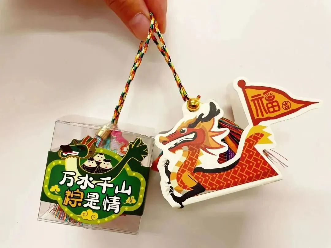佩戴香囊是端午传统习俗之一,一针一线缝制,将端午节的氛围感拉满!摆设香囊摊位,色彩缤纷、手工制作,挂包包、家里或者车内装饰都非常不错。