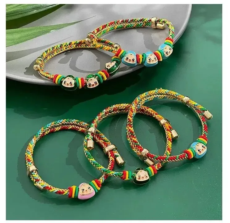 系五彩绳也是端午传统习俗之一,有祈福纳吉美好寓意,五月被古人称为毒月,端午节拴五彩绳有保护驱妖避邪之意。