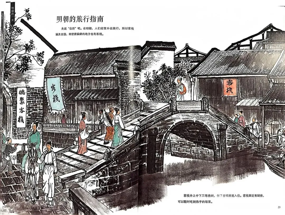 正因为明朝人们经常外出旅行,所以客栈遍及全国,即使很偏僻的地方也有客栈。
