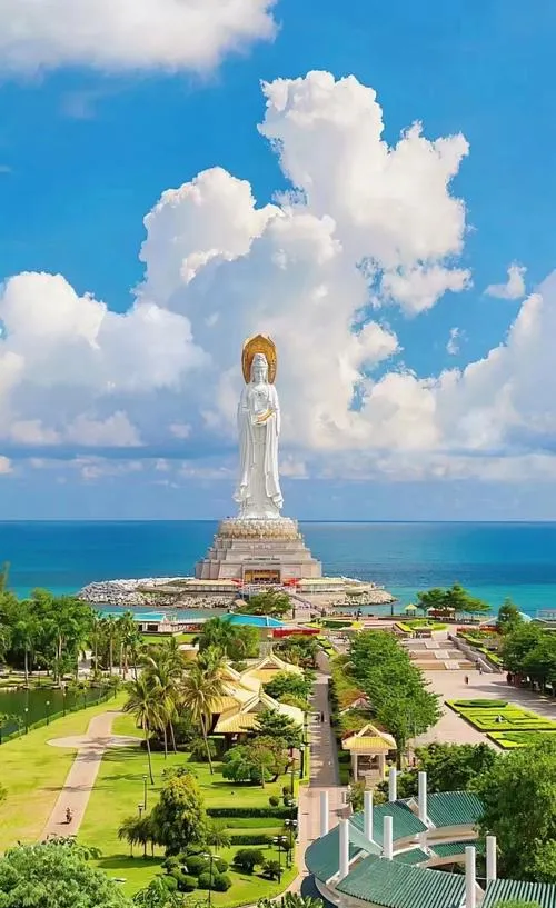 南山寺和海上观音像是三亚最大的宗教主题景区,很多人以为这里是纯粹的佛教圣地,但实际上它是宗教文化和商业运营结合得最彻底的一个案例,整个景区的动线设计、功能分区、商业植入都做得很专业,你可以去南山寺上香礼佛,也可以只是来看108米高的观音像拍照打卡,这两种需求在这里都能被满足,互不干扰。