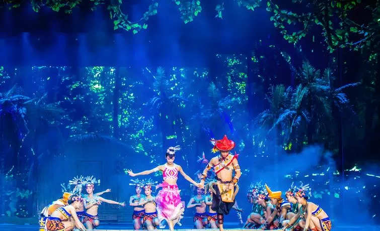 演出内容是三亚本地的历史传说加上民族文化元素,适合全年龄段观看,不会太深奥也不会太幼稚,这种内容的中庸化处理是为了覆盖最广泛的受众群体,如果你想看一场不费脑子但视觉冲击力强的演出,这里能满足需求。