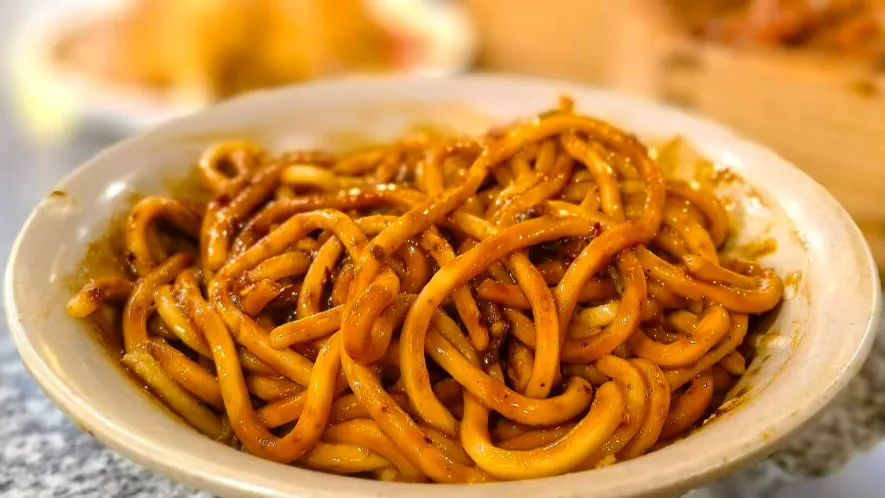 来这里,必尝一碗特色浆面条。随便钻进一条古街小巷里,没准就能找到最地道的风味。浆面条的灵魂在于那碗绿豆发酵的醇厚酸浆,配上芹菜粒、花生、韭花、辣椒油......各种滋味层次分明,一碗吃完,酸香暖意从胃里漫开,舒服极了。