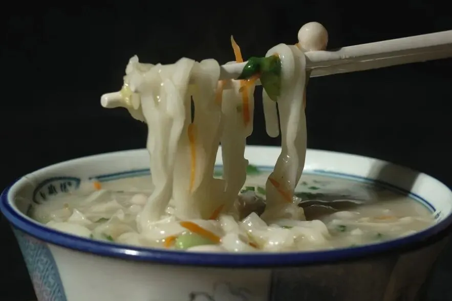 陇北一路、长安路一带的米线是“细米线”的代表。米线在鸡汤或牛肉汤里吸足了鲜味,上头铺着满满一勺浇头,简单配一瓶本地“海碧”汽水,清爽解腻,就是最地道的吃法。