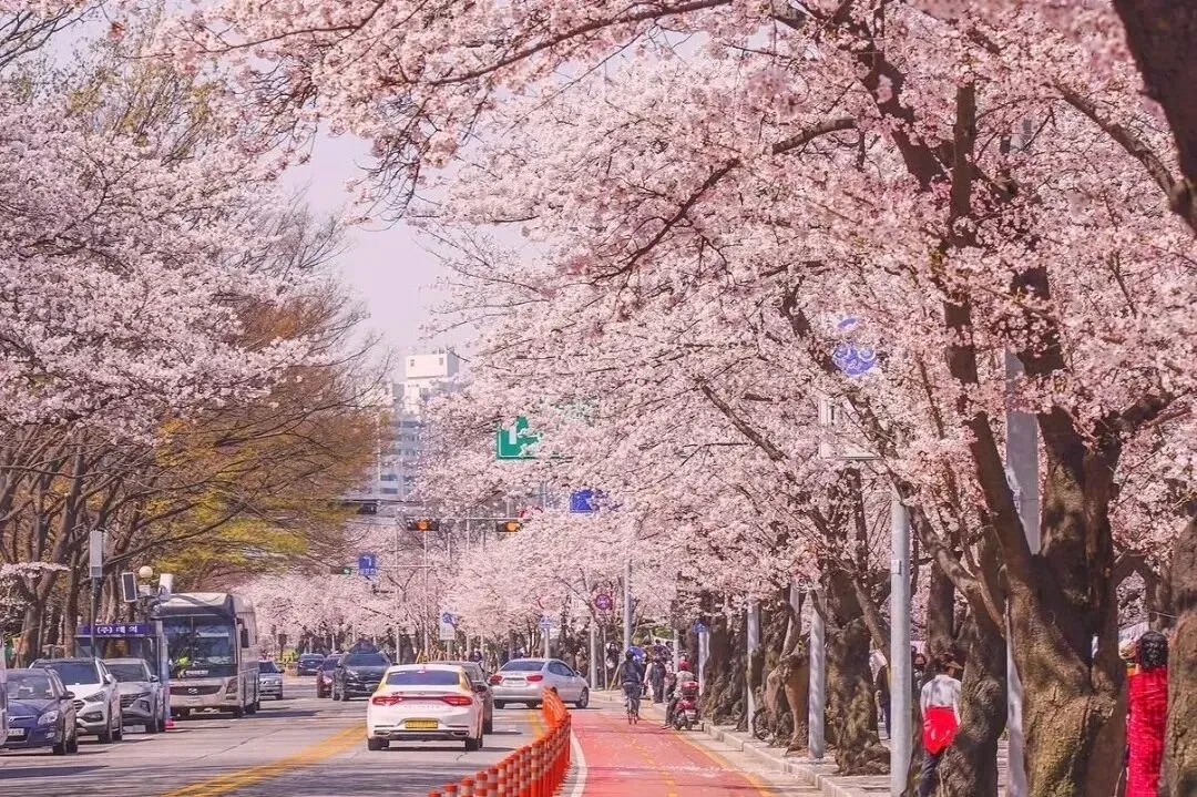 ·汝矣岛轮中路:1.7公里樱花隧道,4月8-12日春花节,夜间灯光秀(19:00-22:00)