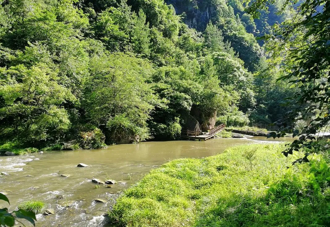 油草河的峡谷修了栈道,可以沿着河走,走的过程中你会发现,水的声音在峡谷里是会变化的,有时候是哗哗的流水声,有时候是滴答的水滴声,有时候是轰隆的瀑布声,这些声音组合起来就是一个交响乐,这种体验让你明白,自然的声音比音乐更复杂。