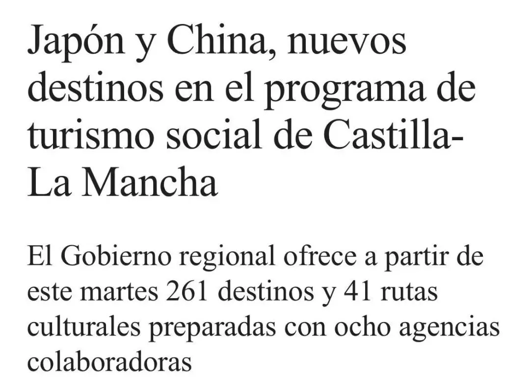 《阿贝赛报》报道,卡斯蒂利亚-拉曼恰自治区政府于3月24日发布了一项社会旅游项目,旨在为55岁以上人群提供更便捷的出行机会,使他们能够前往世界各地旅行。