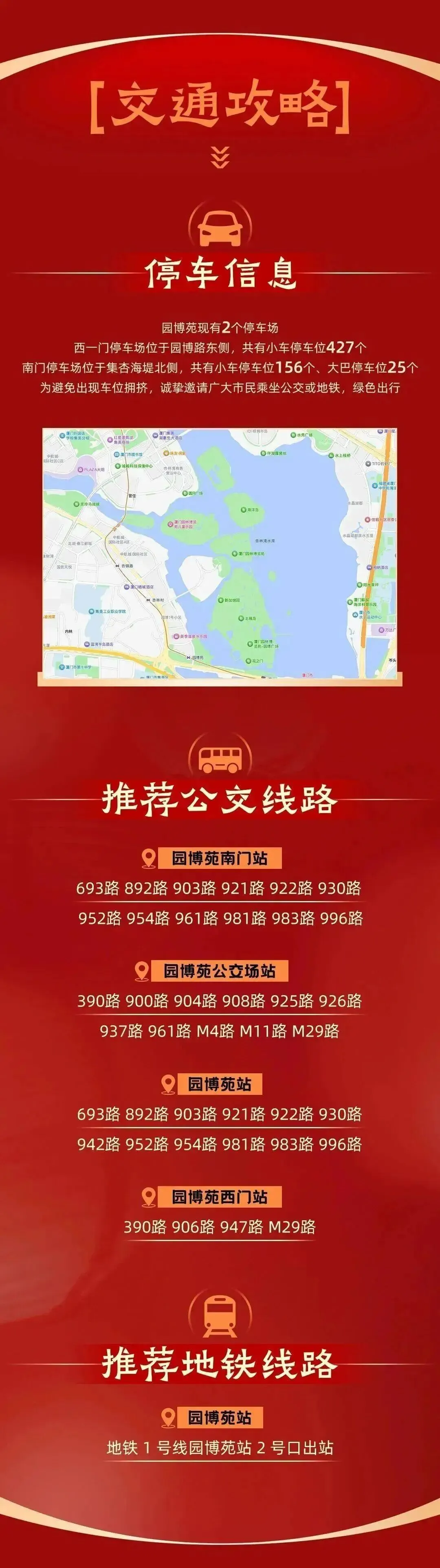 - 西一门停车场:园博路东侧,小车位427个