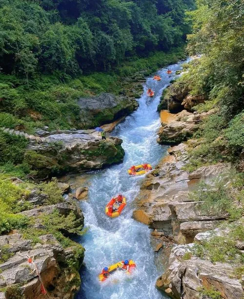 古龙峡这个地方,全国敢说自己是"漂流之王"的景区不少,但真正有底气这么说的不多,古龙峡算一个,因为它的落差和长度在国内确实排得上号,全程6公里,落差378米,这是什么概念,就是你从山顶冲下来的时候,能明显感觉到耳朵有气压变化,这种体验在其他漂流景区很难遇到。很多人觉得漂流就是玩水打水仗,但古龙峡的漂流会让你重新理解什么叫刺激,不是那种吓人的刺激,是一种你全程紧绷但又很爽的刺激,因为水流速度快到你根本没时间去害怕,只能专注在当下这一秒,这种强迫你活在当下的体验反而让人觉得很放松,因为那一个小时里你脑子里装不下任何杂念,只有水和山。