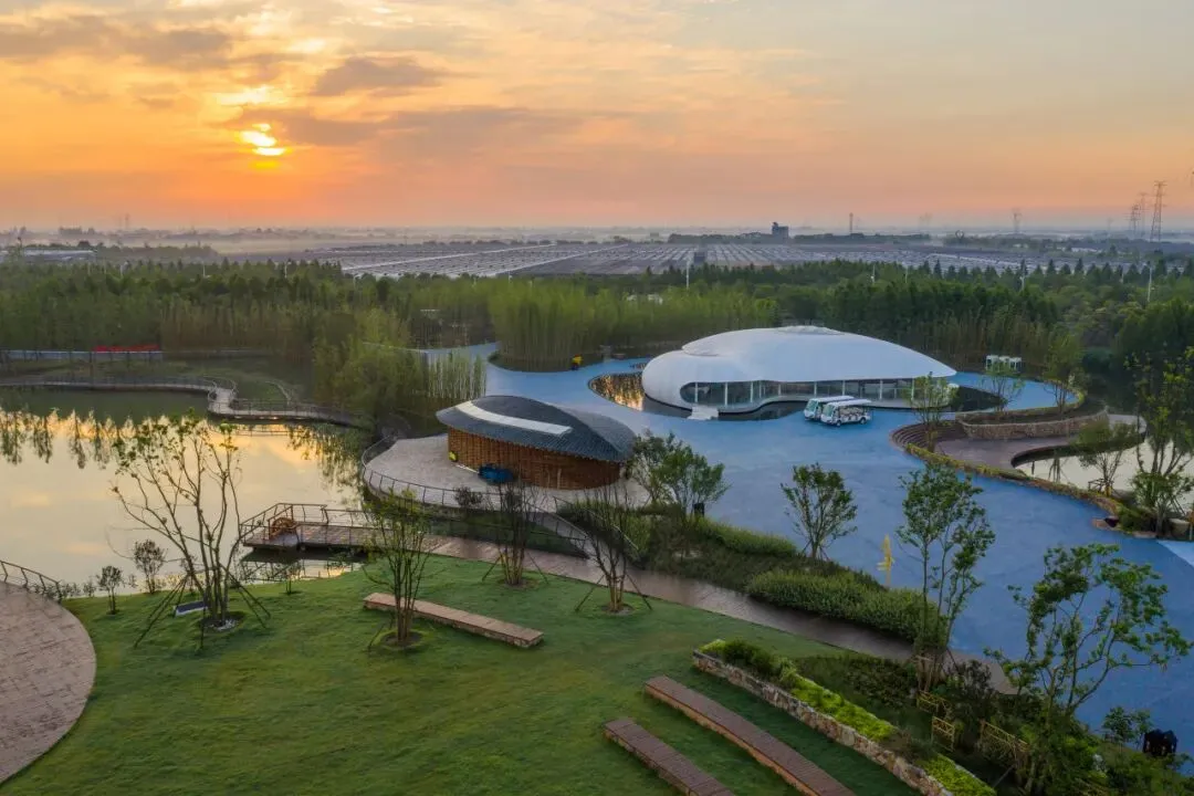 都市农业公园是一个由稻海麦浪包裹的农业休闲观光景区,内有俯瞰高标农田的一粒米观景台,自然风光的月色荷塘、可食森林,亲子时光的亲子课栈和临水驿站,田园菜系的村厨,田家家研学馆,绘就传统与现代交融的都市休闲旅游新地标。