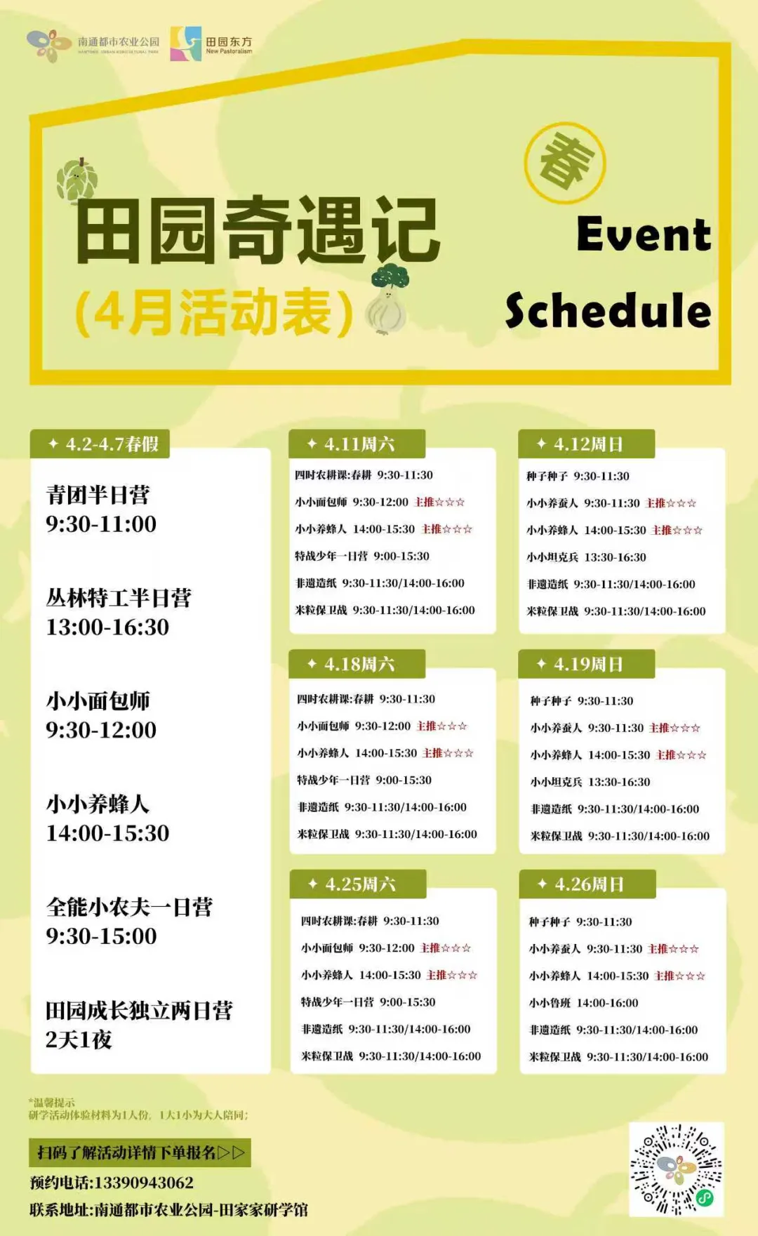 参与方式:活动采用电话预约,活动人员请于3月20日—3月30日进行报名,10人及以上成团