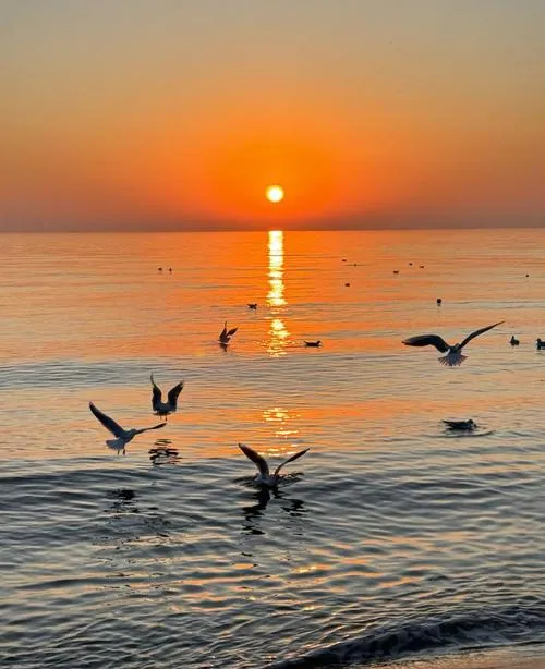 鸽子窝这个地方,本地人都知道,是秦皇岛看日出最好的点,不是因为它位置高,是因为这里的海岸线有个天然的弧度,太阳从海平面升起来的时候,整个光线会顺着这个弧度铺开,把整片海都照成金色,那种光的质感,不是刺眼的亮,是一种很柔的金黄,像是把海水点燃了一样。很多人凌晨四五点就来占位置,但其实日出之后的那段时间更值得待,因为光线稳定下来之后,你能看到海鸟成群地飞过来,落在礁石上,那些鸟不怕人,就在你身边走来走去,那种人和自然之间的距离,在城市里是完全体会不到的。