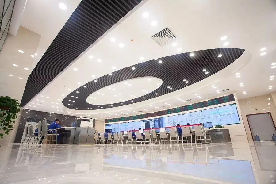 景点介绍:进入集控室完全感觉不出来是进入了工业建筑,而是像五星级酒店大堂般的气派明亮,干净的白色大理石地面如同镜子一般,吊顶上柳叶形状的造型别具一格,散布的照明灯如同繁星一样闪耀,弧型的监控屏墙面科技感满满。