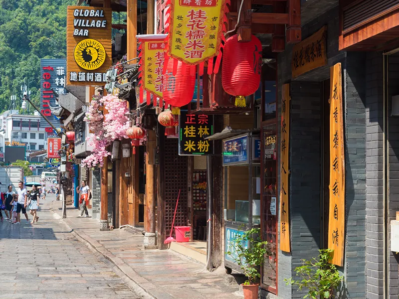 “桂林山水甲天下”,而“甲天下”的山水,大多也就是指阳朔了。这里的山水是最适合恋爱的,每一座山峰都是温柔的曲线,像是相拥的恋人,软绵绵的让人心动不已。在这宁静祥和的城里,有条热闹小资的街-西街,这是一条风情无限的街。西街上的红灯绿酒,别有一番情趣,让人不禁幻想着一场美妙邂逅。