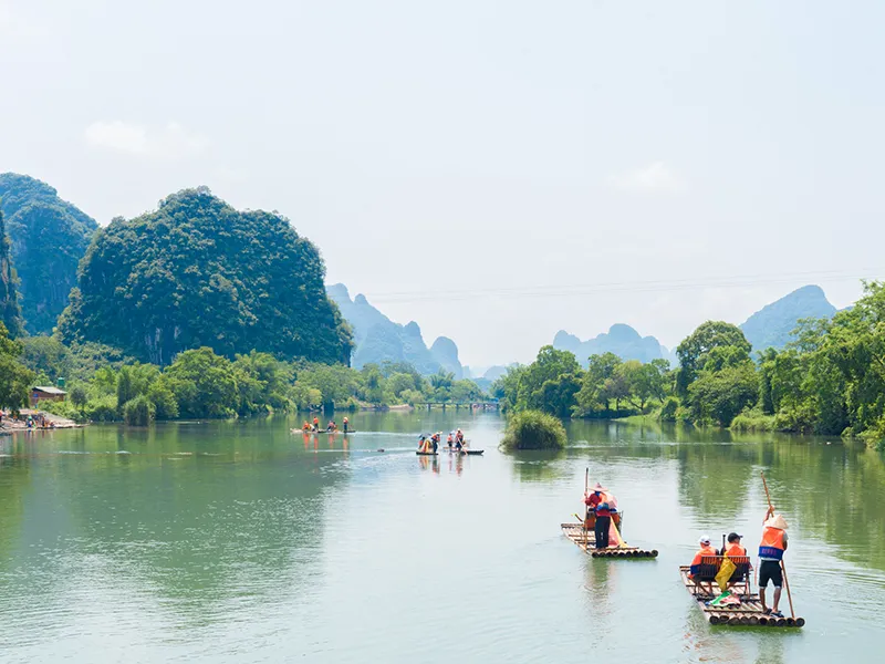 建议27:竹筏游漓江是有精华段的,参考的上船地址是杨堤码头、兴坪码头,其他点没那么好看