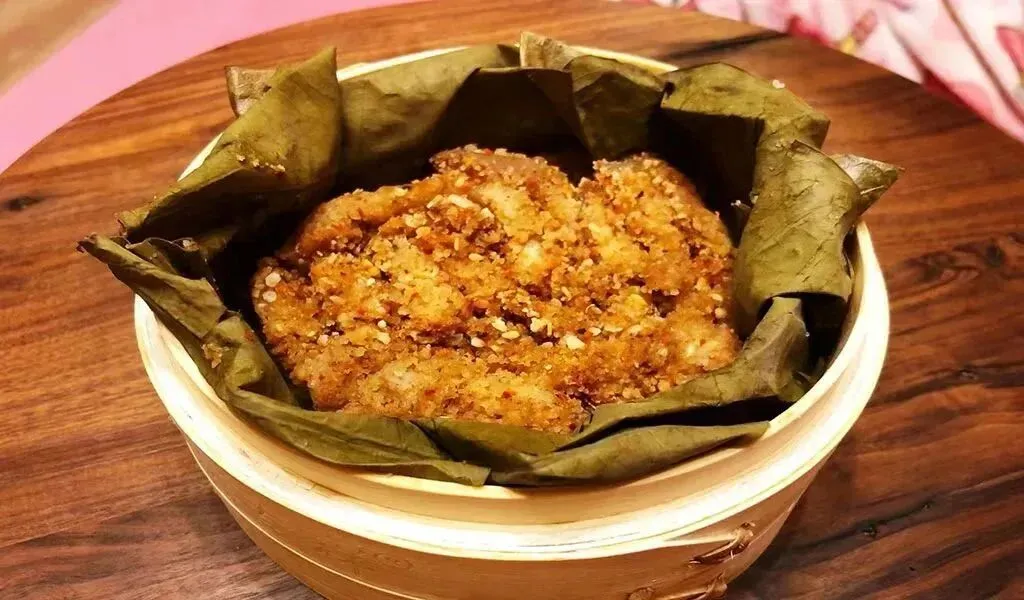 荷叶粉蒸肉是一道传统的家常菜。它主要由带皮五花肉、绿豆粉、荷叶、桂林腐乳和各种调料制成。制作过程中,先将肉煮熟,然后炸制并涂上酱油,再粘上绿豆粉,接着用荷叶包裹,最后放入碟中,用旺火蒸熟。这道菜的特色是颜色绿黄,荷叶的清香,口感松软,肥而不腻,而且具有清热解毒、降低胆固醇的功效。
