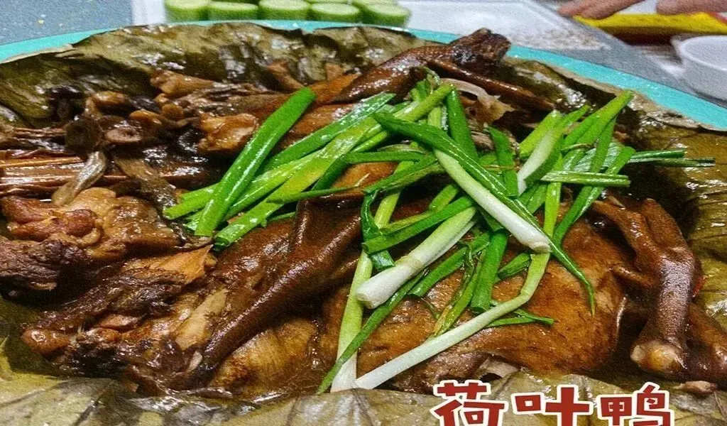 荷叶鸭是一道传统的滋补佳肴。这道菜使用莲藕塘中生长的翠绿荷叶,将肥美的鸭子包裹起来,以鲜嫩的粉香原料作为馅料。烹饪这道菜的关键在于火候的掌握,这样才能调出独特的口味。由于使用了新鲜的荷叶,使得这道菜清香宜人,鸭肉滑嫩,馅料味道鲜美,具有养胃生津,固精补气的功效。
