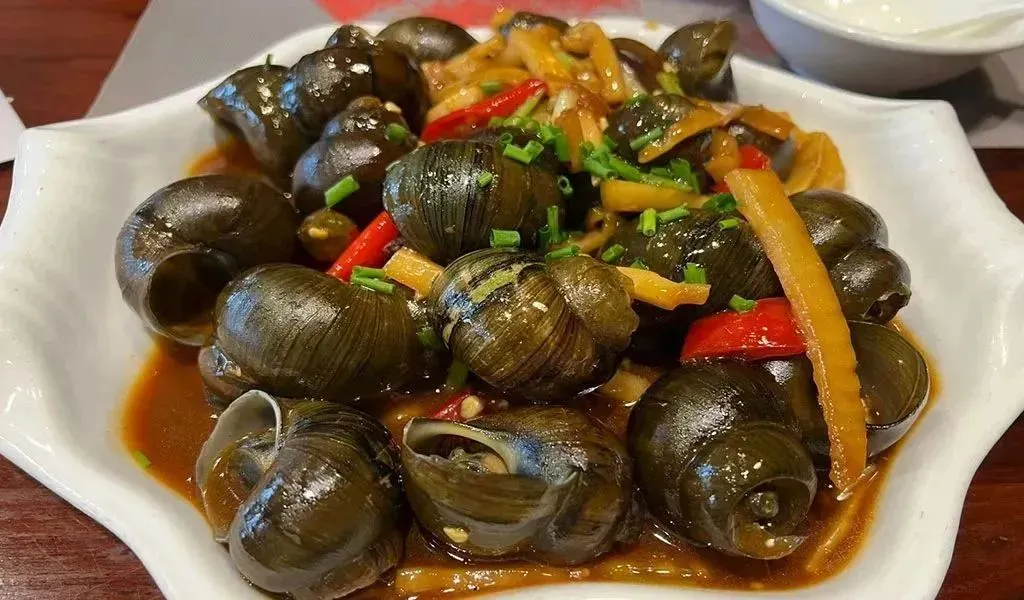 因为桂林田螺在水稻田中生长,所以得名。其特点是螺体较大,肉质丰厚,味道鲜美。烹饪田螺时,必须搭配桂林特制的酸辣椒,并加入葱、姜和特调的三花酒等各种配料炒煮,使口感酸辣鲜美,令人胃口大开。煮制时需要敲掉螺尾,以便更好地入味,也方便享用螺肉。