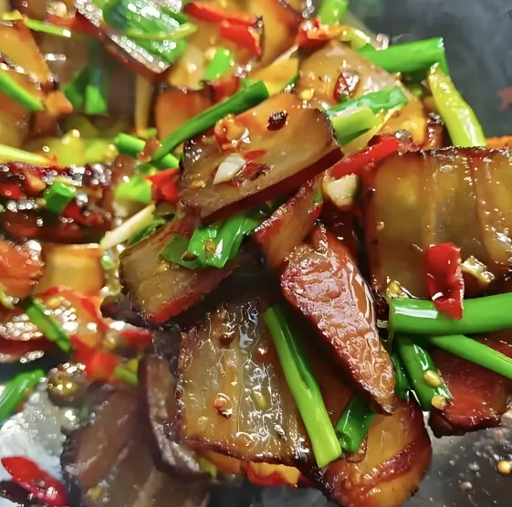 松柏枝烟熏烘烤一个月,肉质棕红,肥而不腻。切一片蒸着吃,或者炒蕨菜、炒蒜苗,那股烟熏香能飘半条街。