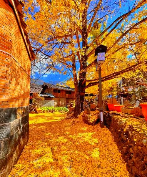 腾冲的秋天,外地人总觉得是看银杏的,但真正在腾冲待过的人知道,腾冲的好不只是银杏,是整个小城在秋天呈现出的那种慢节奏和舒适感,你在固东镇的银杏村走一圈,满地金黄的银杏叶,阳光透过树叶洒下来,整个村子像被镀了层金,这种感觉不是震撼,是一种"就该这样过日子"的踏实。