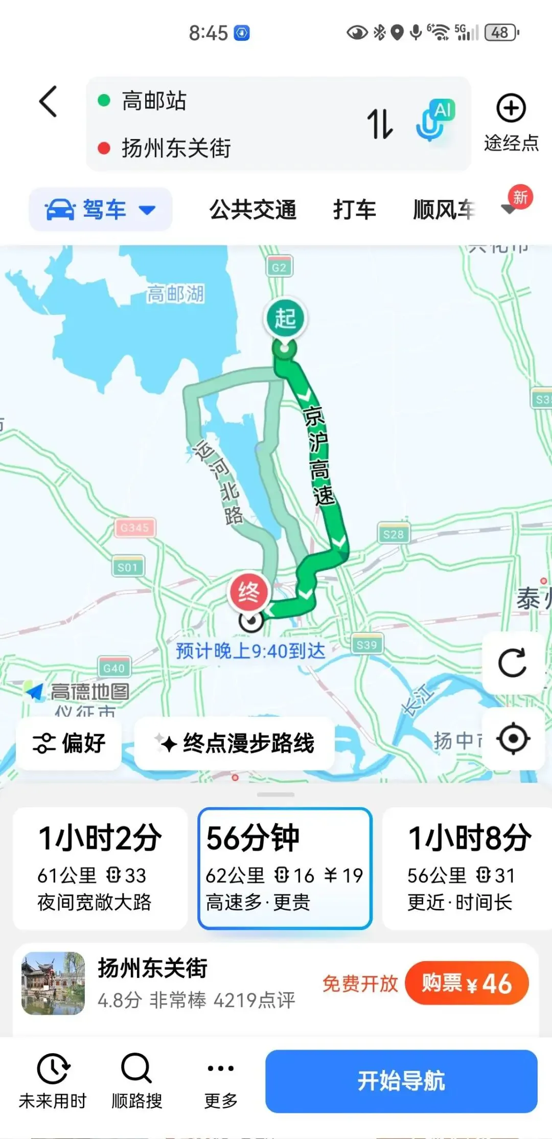 静海到扬州的行程安排