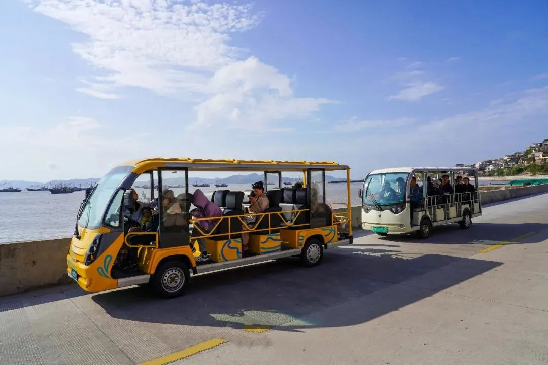 大家从泗礁岛边礁村乘船靠岸后,到达的是黄龙岛的北岙码头。码头处有公交车可到达黄龙岛各渔村。岛上也有景区观光车、共享单车、出租车,景区游玩和岛上四个渔村慢游都很便捷。