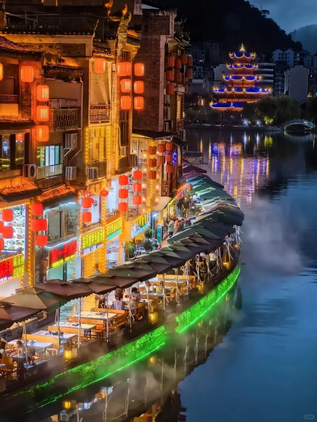 带爸妈来图个轻松。古镇老街平, 走着不累。河边全是茶座, 十块钱一杯, 听流水声能坐一下午。