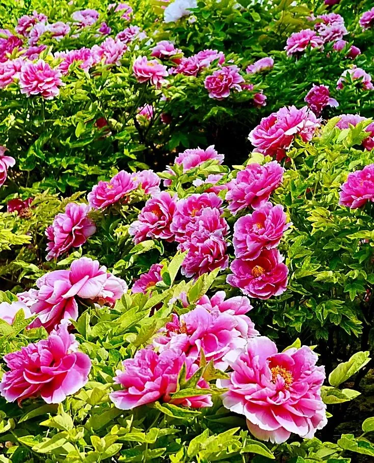 ●中花期(盛花期):4月7日至4月15日,品种以姚黄、二乔、赵粉等为主,在洛阳市区及周边的十多个牡丹园内均有牡丹盛开。大部分名贵品种包括游客喜爱的网红牡丹“银丝贯顶”“春柳”等,都在此时盛开。盛花期的牡丹,是“唯有牡丹真国色,花开时节动京城”的现实写照,此时洛阳各牡丹园基本进入全域花海模式,牡丹色系较全、花型也更加丰富,随手一拍就是氛围感大片。