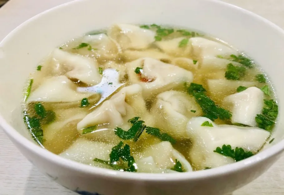 宜兴传统名点,以皮薄如纸、馅多饱满著称。正宗做法需用沸腾骨头汤冲泡,点缀翠绿香菜与紫黑紫菜,宛如碗中花开。汤清味鲜,香气浓厚,口感滑嫩。清晨来上一碗,暖汤下肚,瞬间唤醒味蕾,是当地人最亲切的早餐记忆。