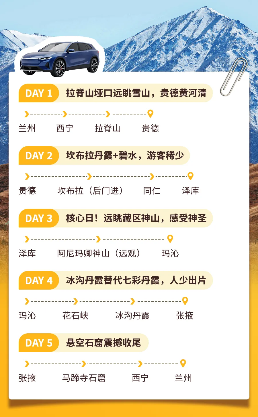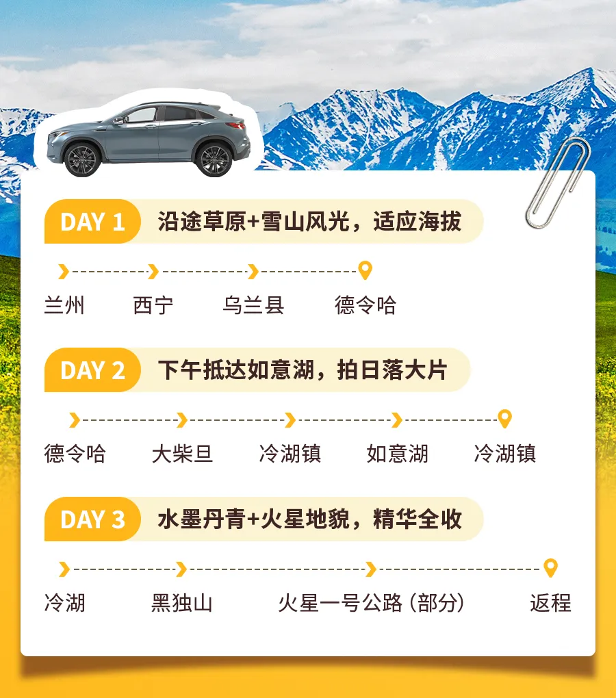这趟旅程,是一场串联起雪山、丹霞、石窟与信仰的深度穿越。它完全避开青甘环线的喧嚣人流,带你驶向青海硬核、纯净的腹地。