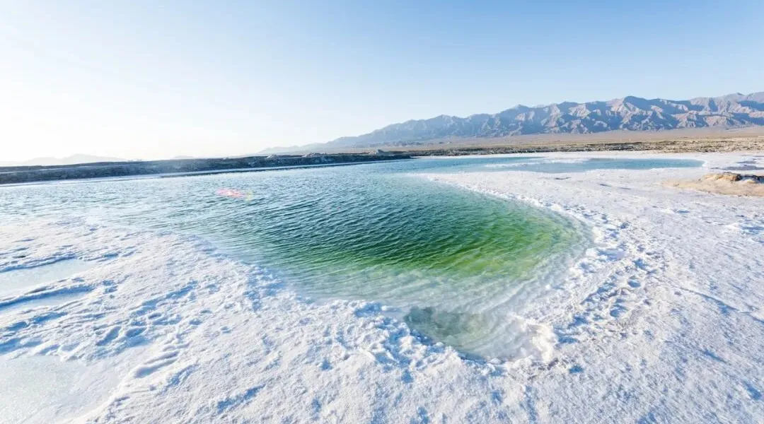 从兰州出发,车轮碾过戈壁公路,第一站便是2026年4月3日全新开放的如意湖💧。整片湖面倒映着蓝天白云,盐滩结晶在阳光下碎钻般闪烁,梦幻得不真实。